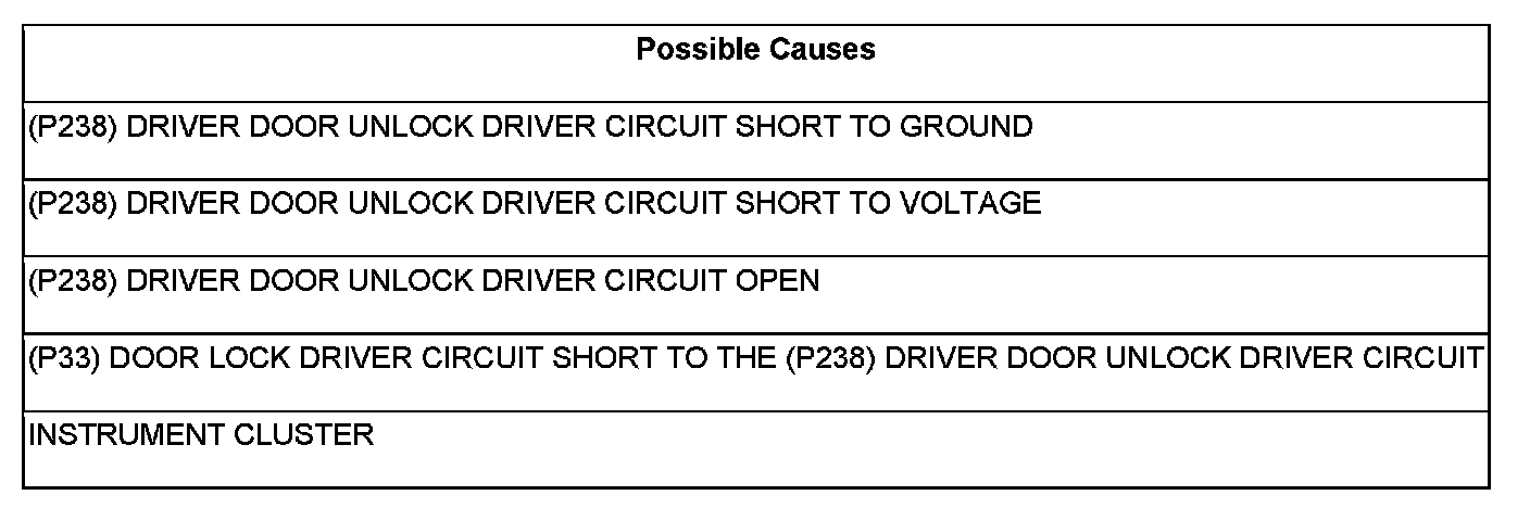 1. (P238) DRIVER DOOR UNLOCK DRIVER CIRCUIT SHORT TO GROUND