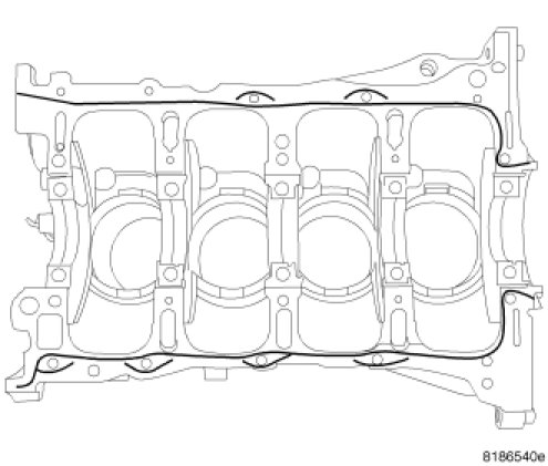 1. Apply a 2 mm bead of Mopar(R) engine sealant RTV or equivalent as shown.