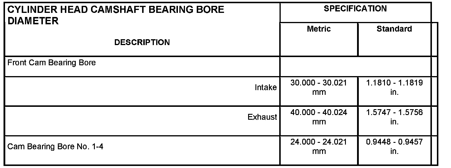 Cylinder Head Camshaft Bearing Bore Diameter: