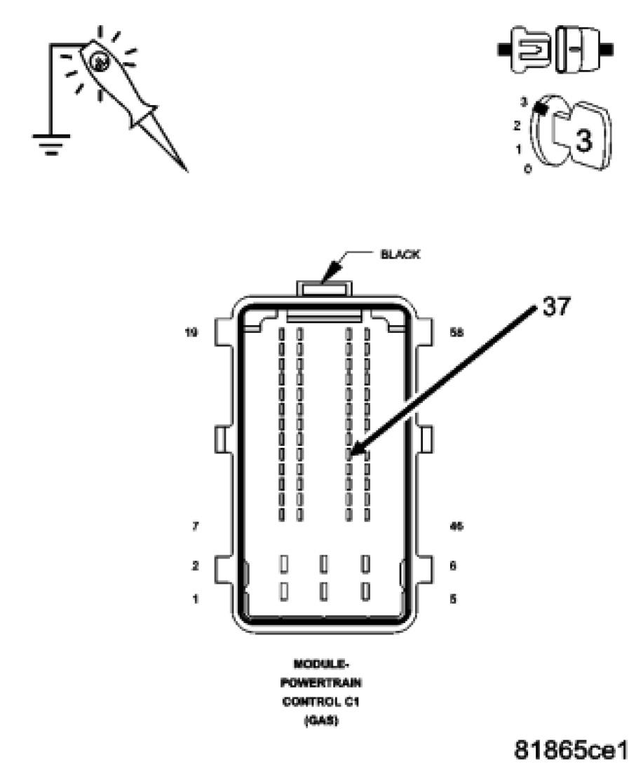 Using a 12-volt test light connected to ground, probe the Start Enable circuit in the PCM harness connector while holding the ignition key in the start position.