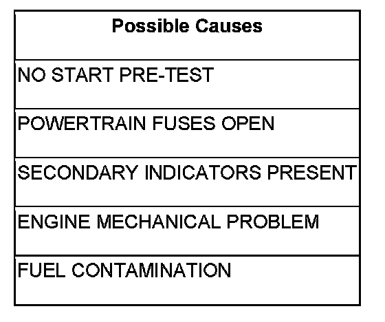NOTE: Diagnose only the Secondary Indicators that would cause a no start.