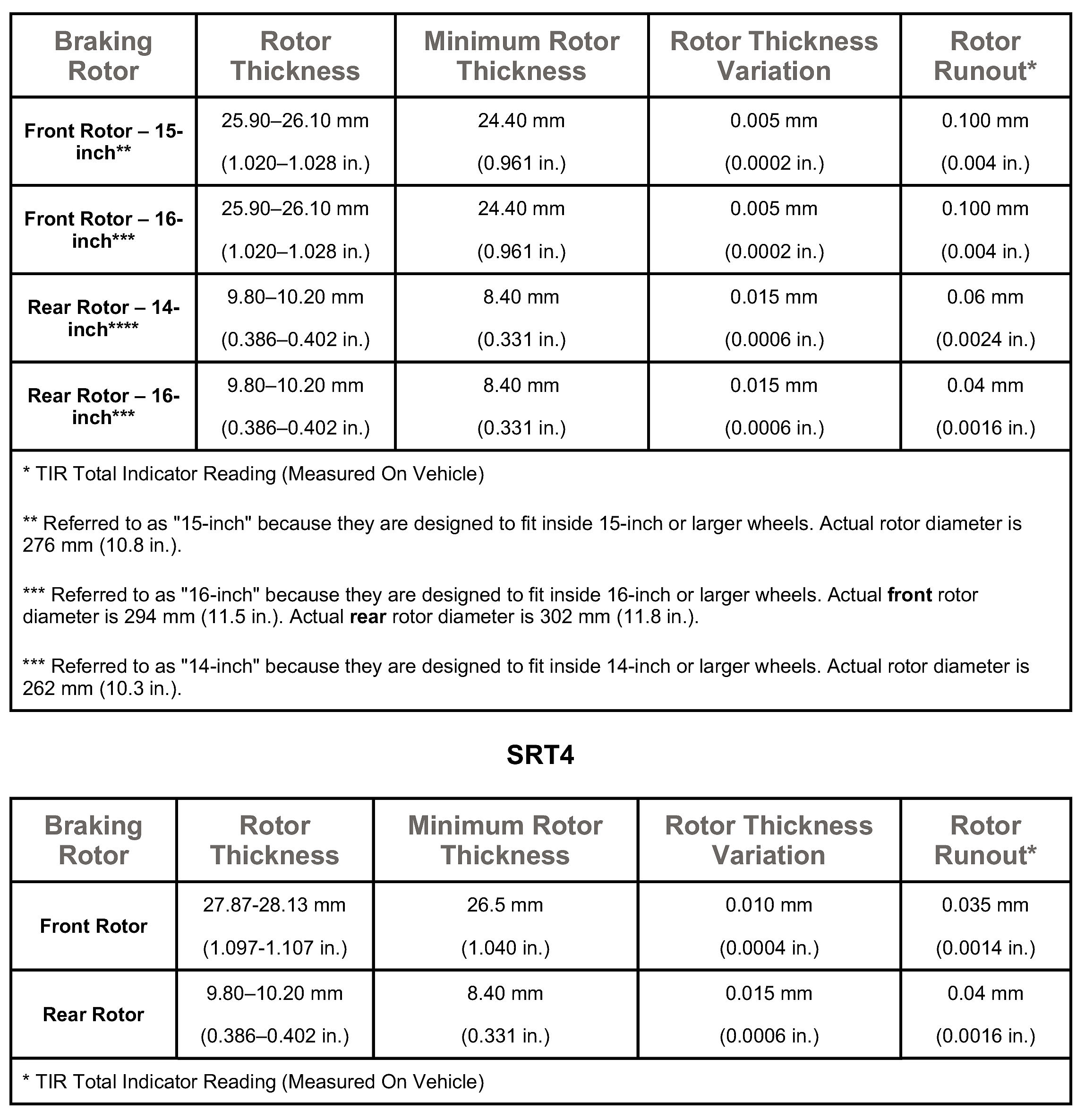 BRAKE ROTOR LIMITS/SPECIFICATIONS