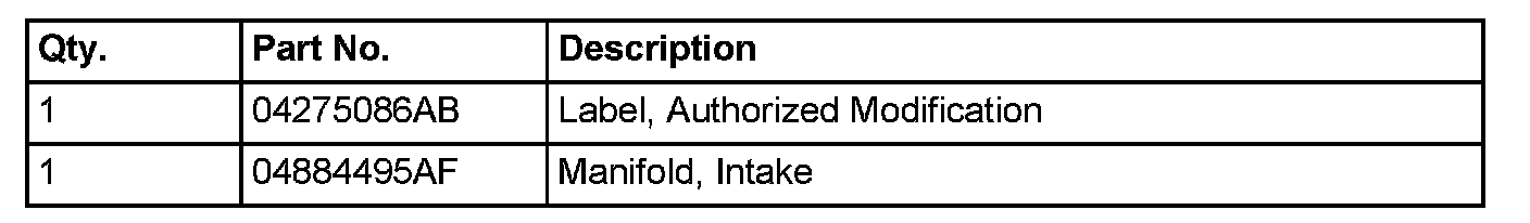 1. Vehicles built through March 22, 2007 will require a new Intake Manifold pn 04884495AF. Following the procedures listed in DealerCONNECT > TechCONNECT replace the intake manifold.