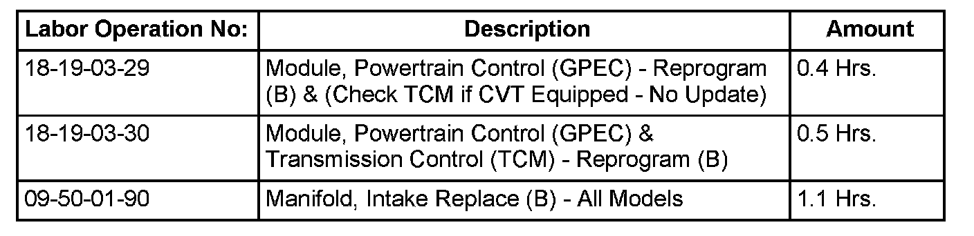 This bulletin involves selectively erasing and reprogramming the GPEC Powertrain Control Module (PCM) with new software and replacing the intake manifold as required.