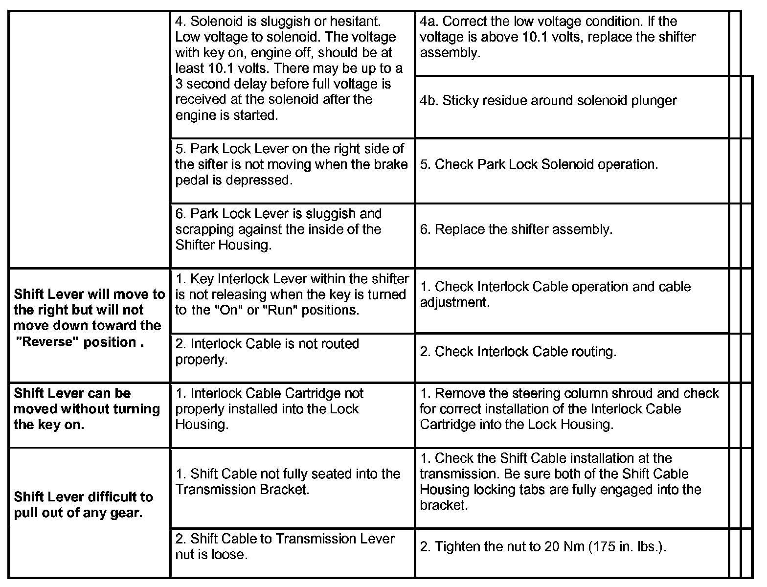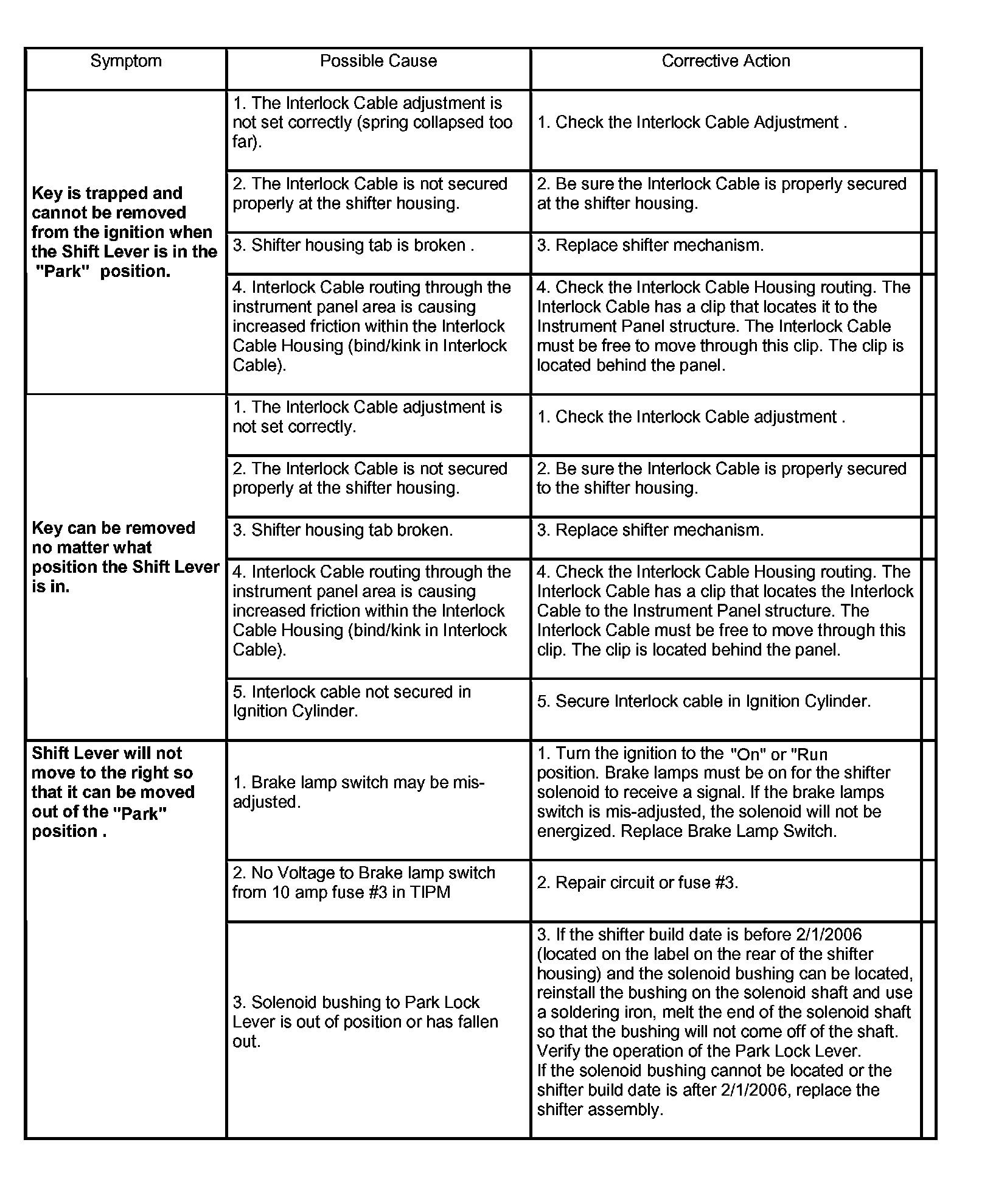 The Interlock Cable is attached to a lever within the Shifter that prevents the Shift Lever from moving out of "Park" without the key (theft prevention). The Interlock Cable adjustment is preset at the factory. When properly adjusted, the Interlock System prevents the key being removed from the Key Cylinder when the Shift Lever is in a position other then "Park".