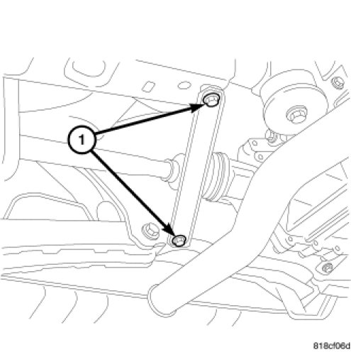 6. Install the two driveline module side mounting bolts (1) and tighten to 102 Nm (75 ft. lbs.).