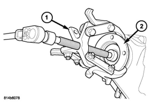 2. Install Holder 6958 (1) onto the rear output flange (2).