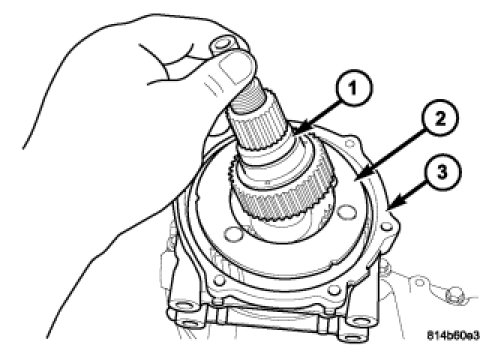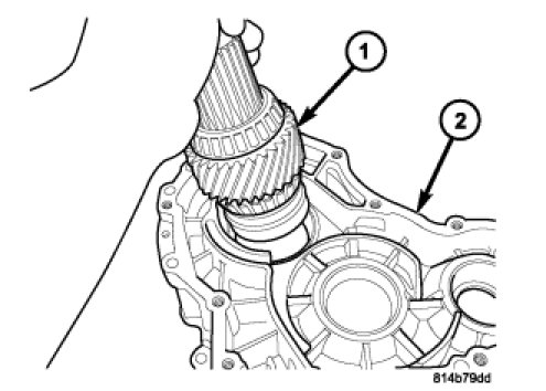 20. Remove the input gear and hollow shaft assembly (1) from the front housing (2).