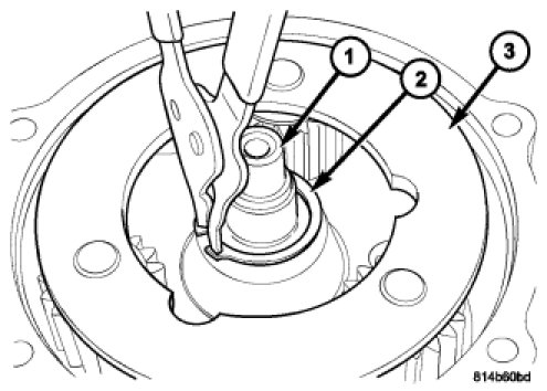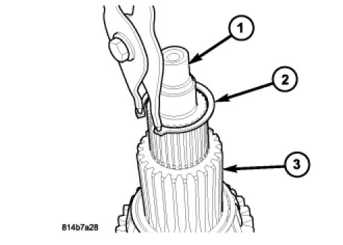 14. Remove the snap-ring (2) holding the input shaft (1) to the planetary gear system (3).