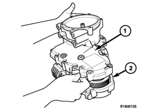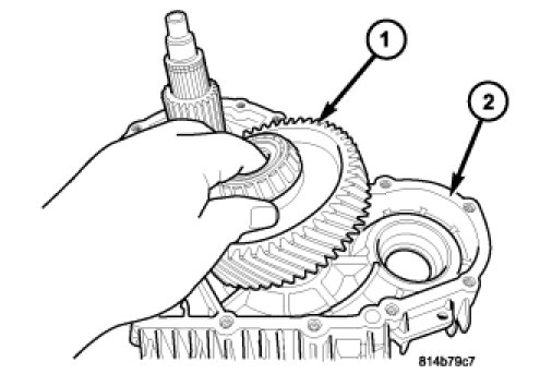 15. Remove the planetary gear system (1) from the transfer case rear housing (2).