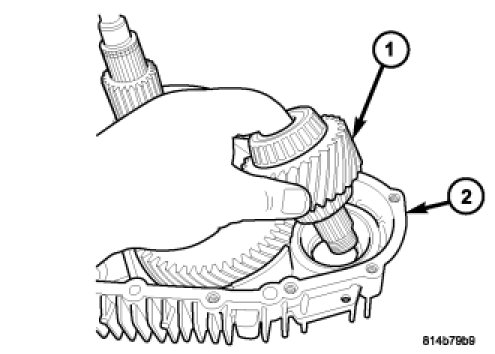 19. Remove the intermediate gear (1) from the front housing (2).
