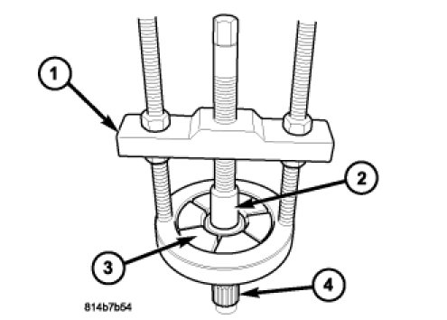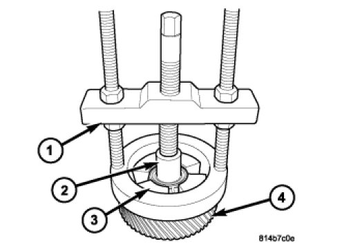 4. Remove the rear output shaft flange (2) from the output shaft. If the flange is difficult to remove, use a suitable 2 or 3 jaw puller to remove the flange.