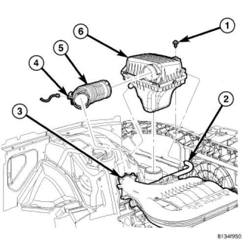 3. Connect the inlet air duct (5) to the housing (6) and tighten clamp.