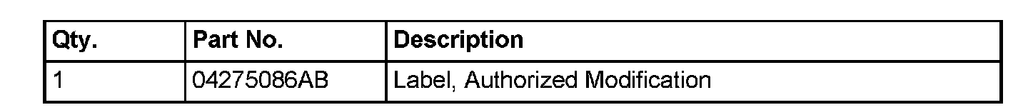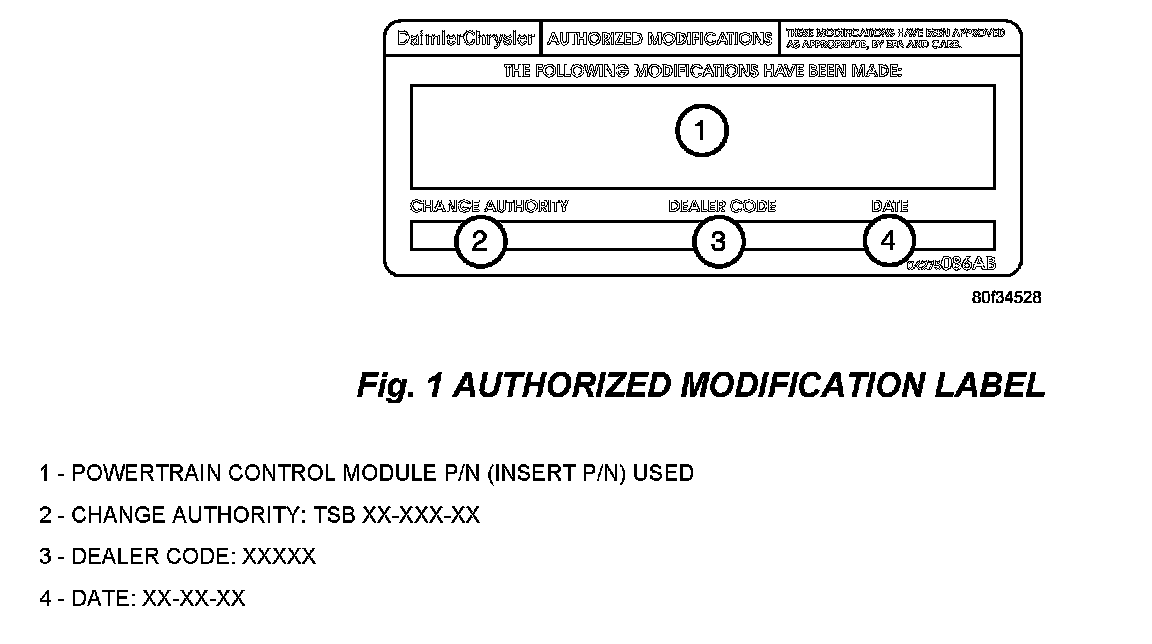6. Type the necessary information on the "Authorized Modification Label" p/n 04275086AB and attach near the VECI label (Fig 1).