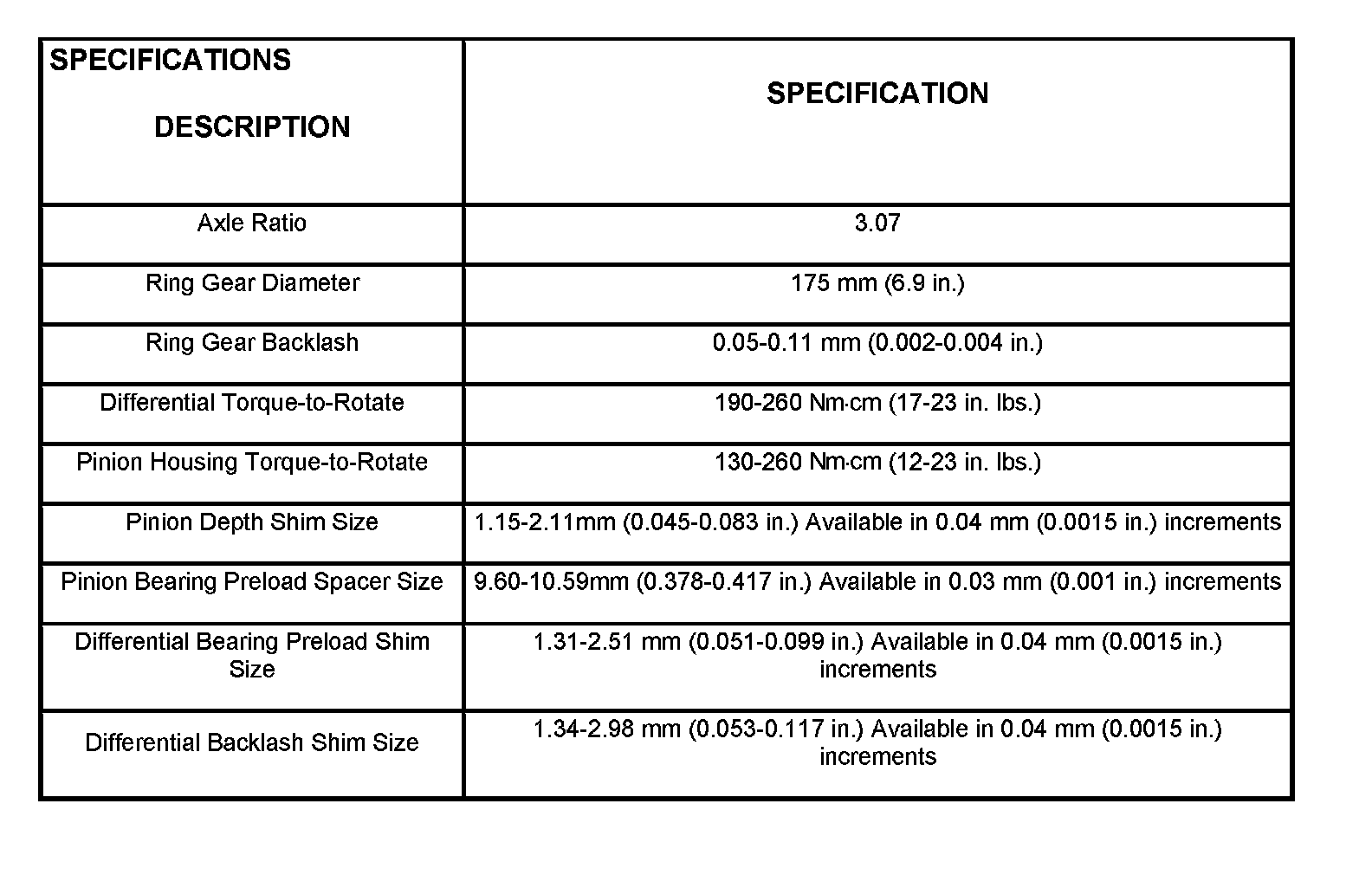 SPECIFICATIONS - 175MM FIA FRONT AXLE