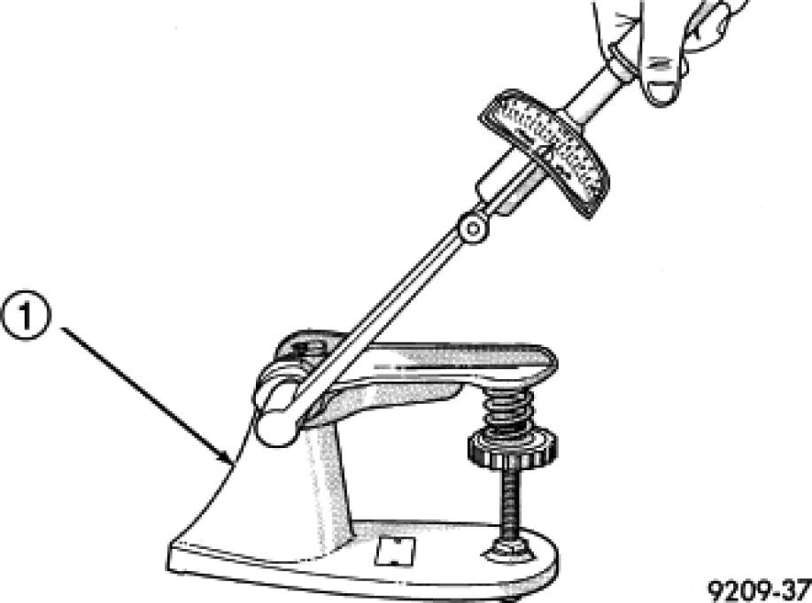 When valves have been removed for inspection, reconditioning or replacement, valve springs should be tested. As an example; the compression length of the spring to be tested is 38.00 mm (1.496 in.). Turn table of Tool C-647 until surface is in line with the 38.00 mm (1.496 inches.) mark on the threaded stud and the zero mark on the front. Place spring over stud on the table and lift compressing lever to set tone device. Pull on torque wrench until ping is heard. Take reading on torque wrench at this instant. Multiply this reading by two. This will give the spring load at test length. Fractional measurements are indicated on the table for finer adjustments. Refer to Engine Specifications to obtain specified height and allowable tensions. Replace springs that do not meet specifications.