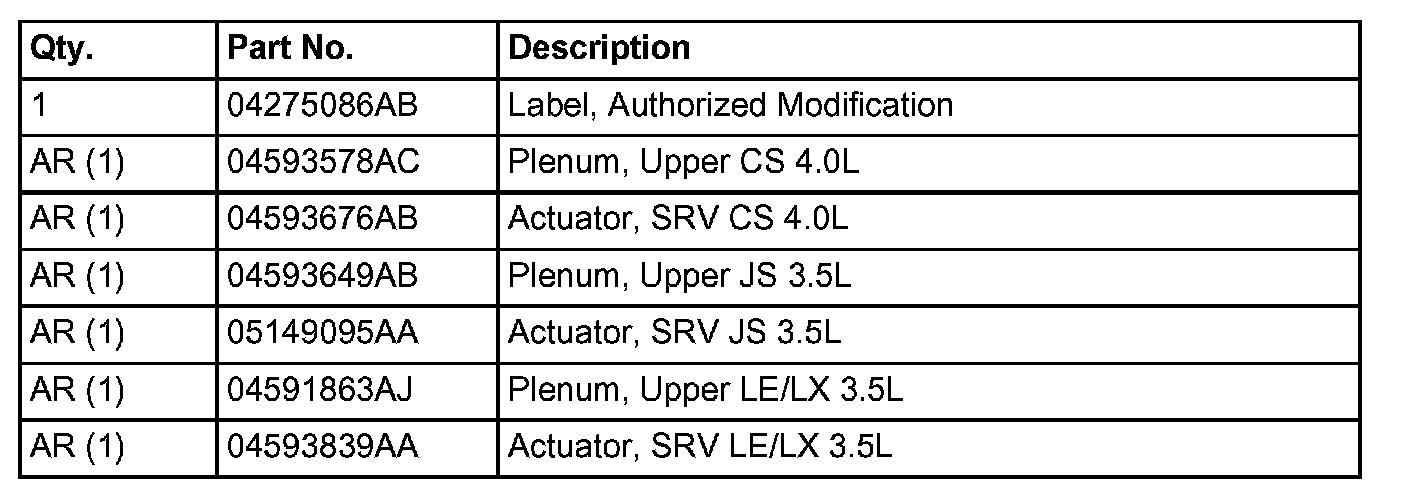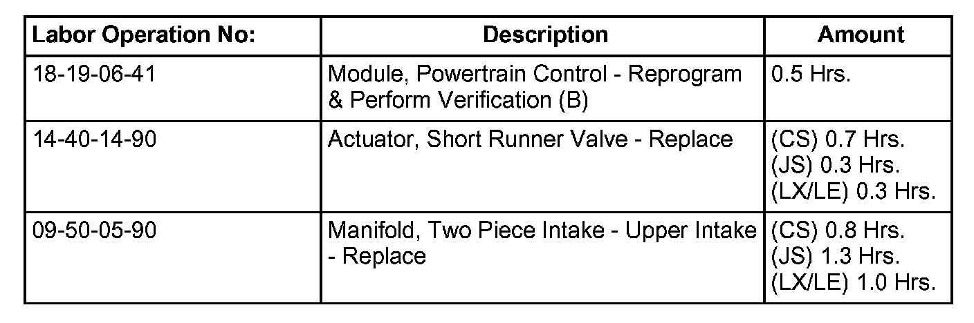 This bulletin applies to CS models built prior to December 15, 2006 (MDH1215XX) with a 4.0L engine (Sales Code EGQ), JS models built prior to December 13, 2006 (MDH1213XX) with a 3.5L engine (Sales Code EGF), LX models built prior to February 5, 2007 (MDH0205XX) with a 3.5L engine (Sales Code EGG), and LE models built prior to February 10, 2007 (MDH0210XX) with a 3.5L engine (Sales Code EGG)