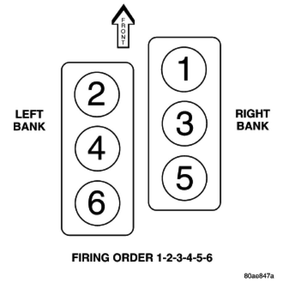 The cylinders are numbered from front to rear, with the right bank odd numbered, and the left bank even numbered. The firing order is 1-2-3-4-5-6.