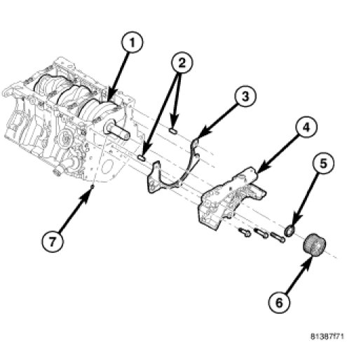 Install oil pump (4) and gasket (3) carefully over the