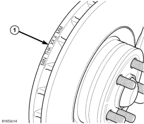 NOTE: SRT8 vehicles have the minimum thickness specification stamped into the outer diameter edge (1) (along vented end) of the disc.