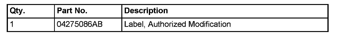 8. Type the necessary information on the "Authorized Modification Label" p/n 04275086AB and attach near the VECI label (Fig. 1).