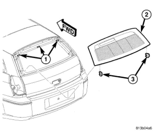 19. Using an assistant, position the liftgate glass (2) over the liftgate glass opening and against the support spacers (1 and 3).