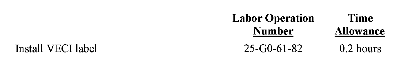 An incorrect Vehicle Emission Control Information (VECI) label was inadvertently installed on about 1550 of the above vehicles. The VECI label is required under Federal and California regulations.