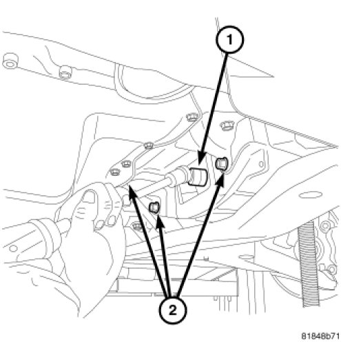 13. Install lower bell housing bolts (2) and tighten bolts.