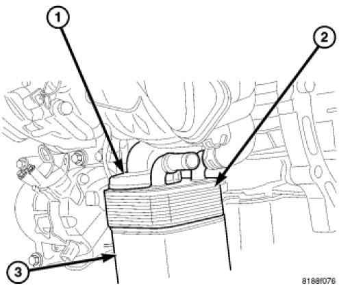 21. Install coolant hose to oil cooler (2).
