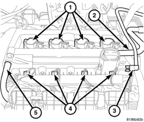 35. Install PCV hose (5) to valve cover.