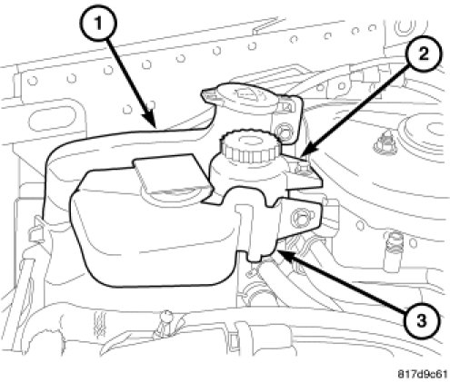 49. Install coolant reservoir (3) and connect hose.