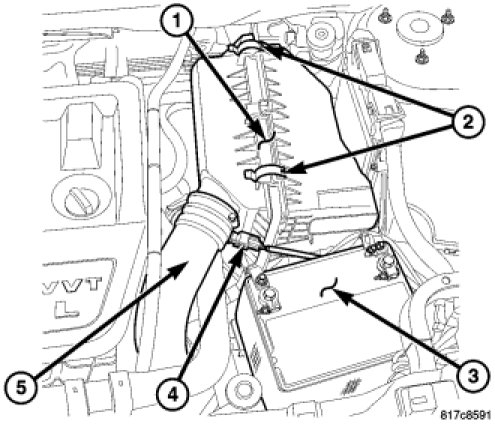 54. Install clean air hose (5).