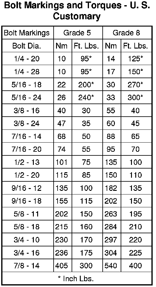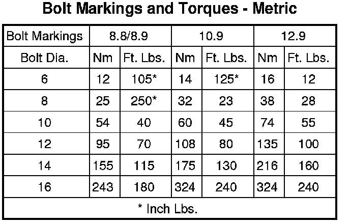 The SAE bolt strength grades range from grade 2 to grade 8. The higher the grade number, the greater the bolt strength. Identification is determined by the line marks on the top of each bolt head. The actual bolt strength grade corresponds to the number of line marks plus 2. The most commonly used metric bolt strength classes are 8.9 and 10.9. The metric strength class identification number is imprinted on the head of the bolt. The higher the class number, the greater the bolt strength. Some metric nuts are imprinted with a single-digit strength class on the nut face.