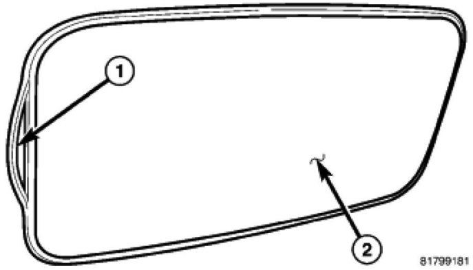 2. Seat the seal into the glass channel fully. Using care working the seal around the glass (2), being careful not to over stretch the seal while installing.