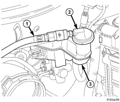 1. Attach Master Cylinder Cap (2), Special Tool 6921, in place of the filler cap on the master cylinder reservoir (3).