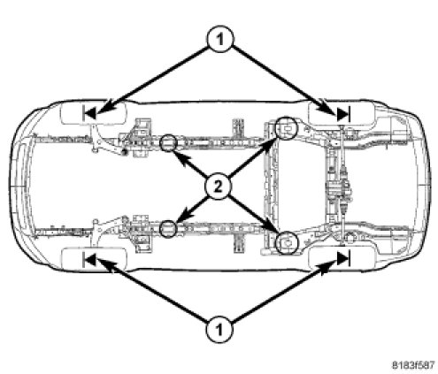 CAUTION: When lifting a Caliber SRT 4 vehicle on a hoist it may be necessary to use 55 mm lift arm spacers to clear the SRT 4 ground effect components. Failure to lift the SRT 4 correctly may result in ground effect component damage.