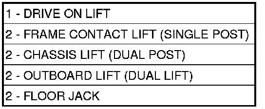 When properly positioned, a floor jack can be used to lift the vehicle and support the raised vehicle with jack stands.