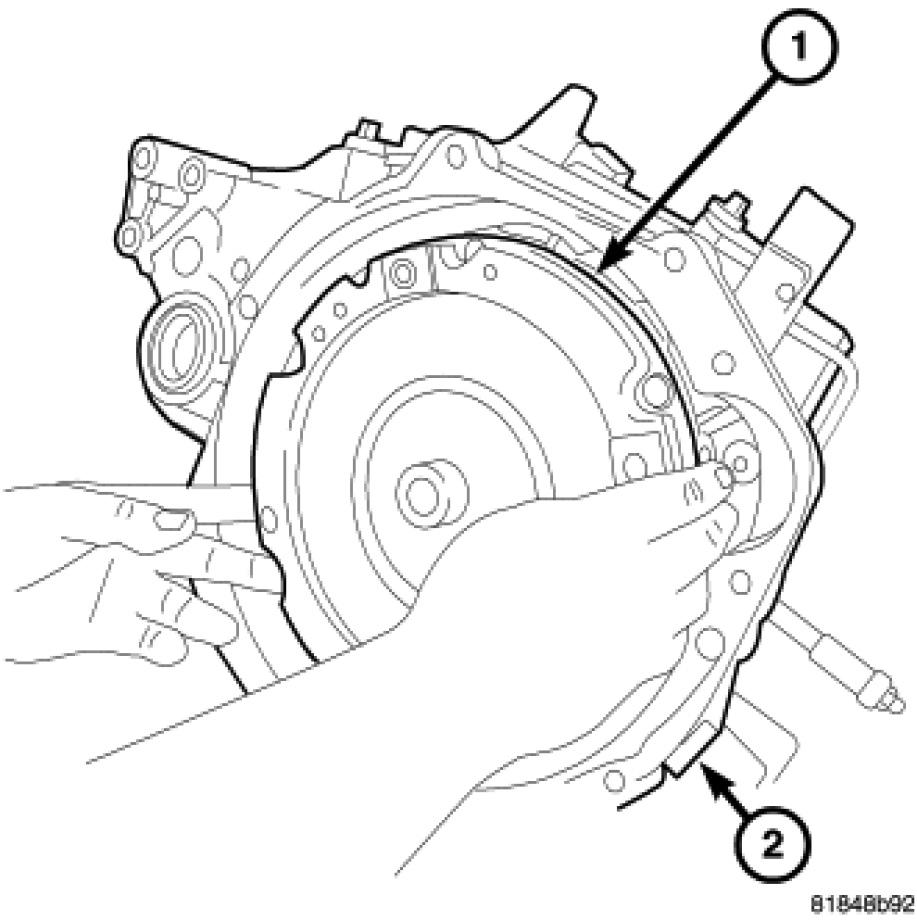 15. Install four (4) modular clutch-to-driveplate bolts (4). Align drive plate and modular clutch alignment marks placed upon disassembly. Start with tight-tolerance (slotted) hole, install and torque bolts to 88 Nm (65 ft. lbs.).