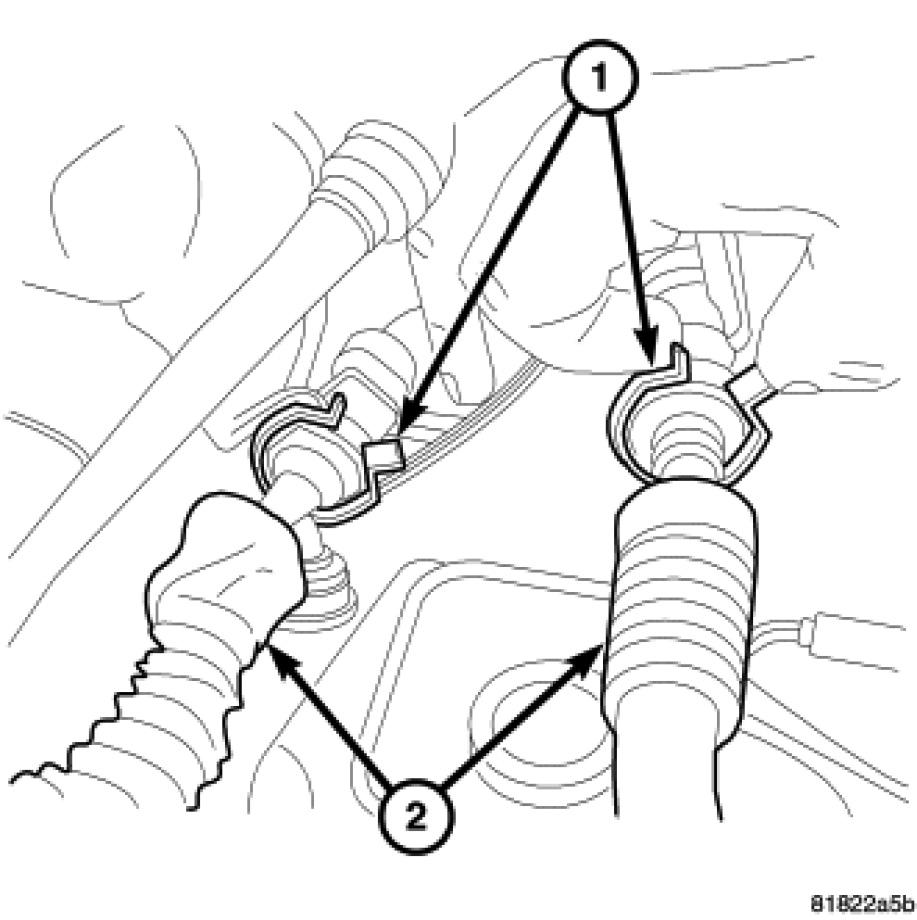 24. Connect shift and selector cables (2) to shift lever. Install cables to bracket (1).