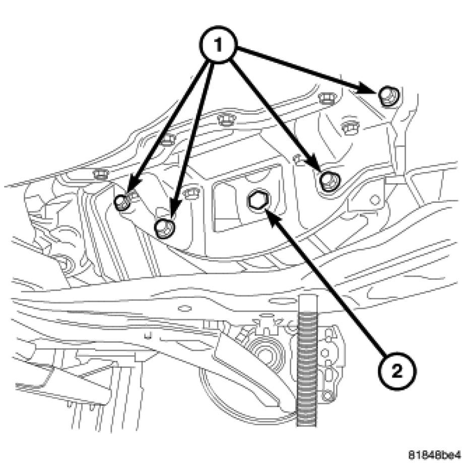 7. Install the rear transmission mount through bolt (4) at this time and tighten to 68 Nm (50 ft. lbs.).