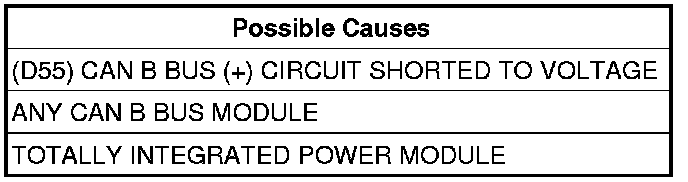 - Repair the (D55) CAN B Bus (+) circuit for a short to voltage.