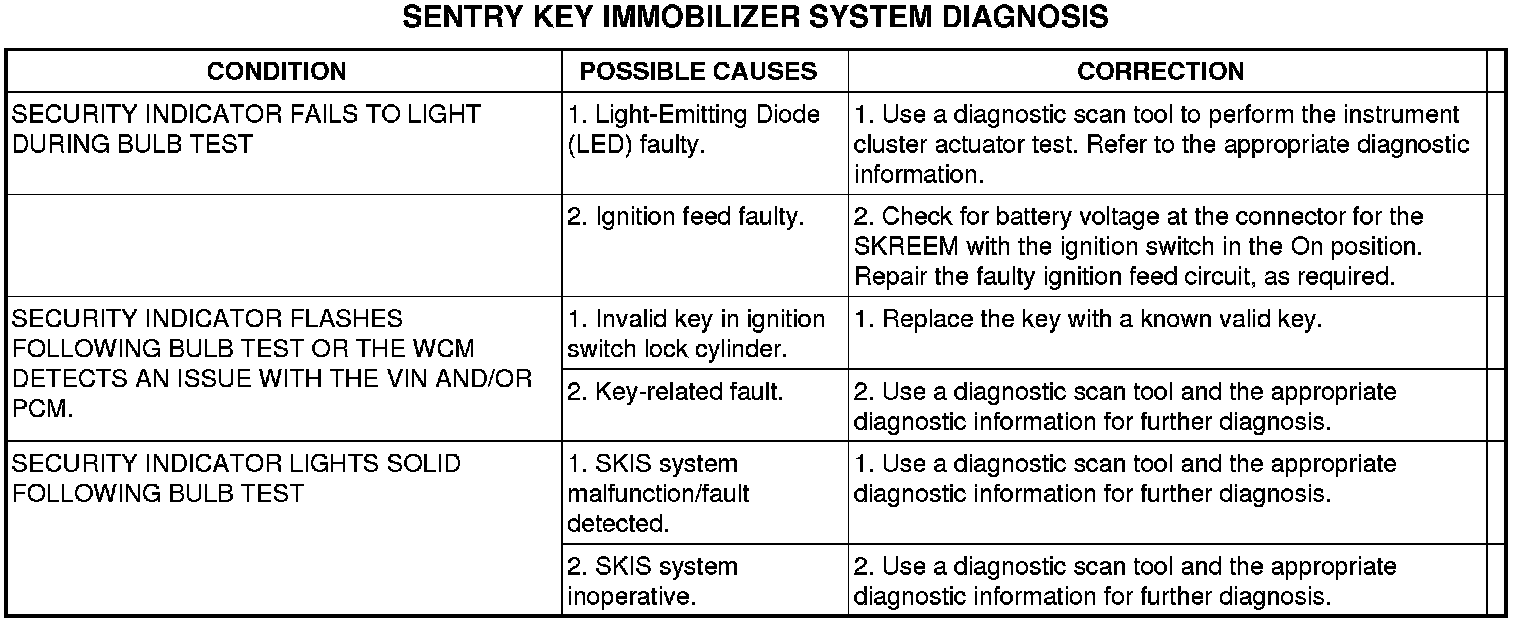 The Vehicle Theft Security System (VTSS) is divided into two basic subsystems: Vehicle Theft Alarm (VTA) and Sentry Key Immobilizer System (SKIS). Following are the recommended procedures for diagnosis and testing of each of these two subsystems.