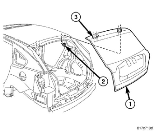 With the help of an assistant, place liftgate (1) onto liftgate hinges (3).