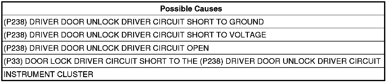 1. (P238) DRIVER DOOR UNLOCK DRIVER CIRCUIT SHORT TO GROUND