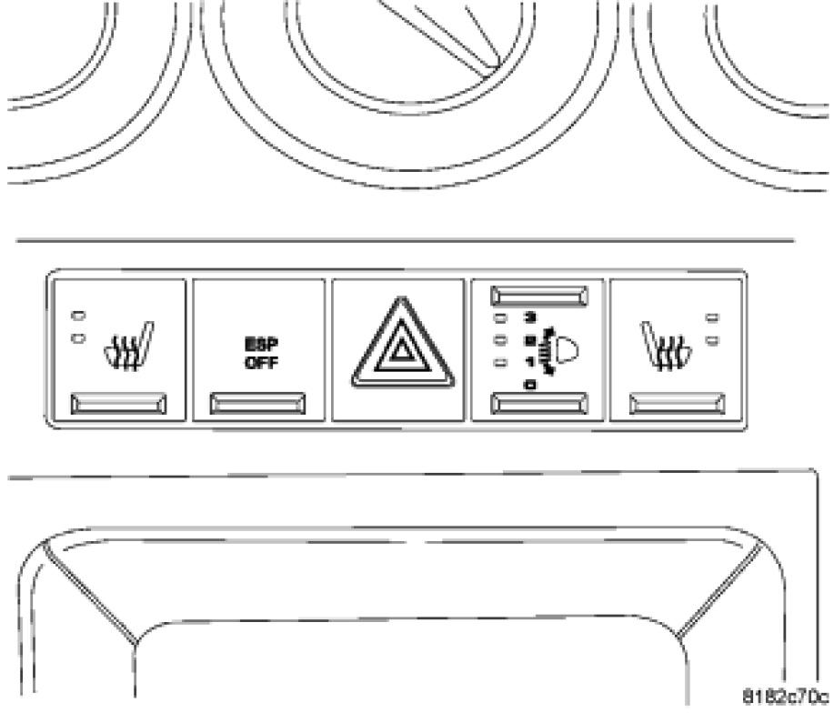 The ESP Off Switch is part of the accessory switch bank module located in the center bezel on the instrument panel above the transmission gear shifter. The ESP Off switch turns the Electronic Stability Program off whenever the switch is depressed. Depressing the switch a second time turns the ESP(R) back on. The switch resets itself each time the ignition is cycled.