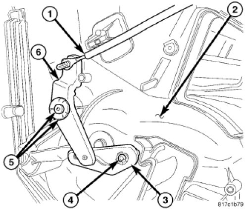 1. Install the four mode door levers (1, 2, 3 and 4) onto the right side of the air distribution housing (5) Make sure the lever retaining tabs are fully engaged to the housing.
