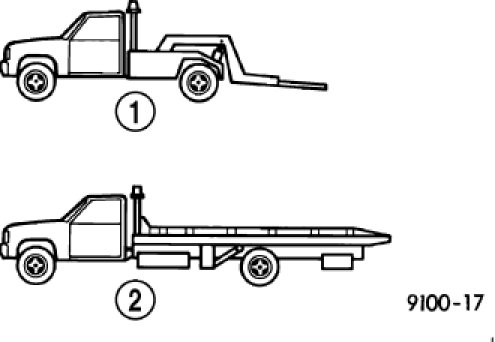 To avoid damage to bumper fascia and air dams use of a wheel lift or flat bed towing device is recommended. When using a wheel lift towing device, be sure the unlifted end of disabled vehicle has at least 100 mm (4 in.) ground clearance. If minimum ground clearance cannot be reached, use a towing dolly. If a flat bed device is used, the approach angle should not exceed 15 degrees.