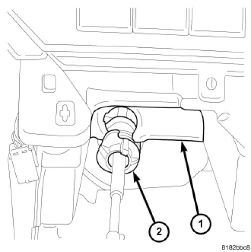 1. Install the shifter cable (1, 2) through the bulkhead and into the passenger compartment.