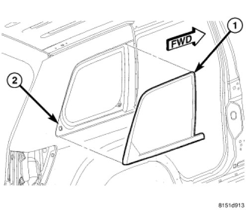 2. Remove the quarter panel trim from the side of the vehicle being serviced Quarter Trim Panel - Removal.