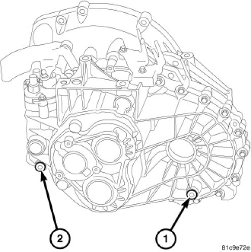 1. Insure the vehicle is level, remove the fill plug (2) and add fluid until the fluid just starts to trickle out.